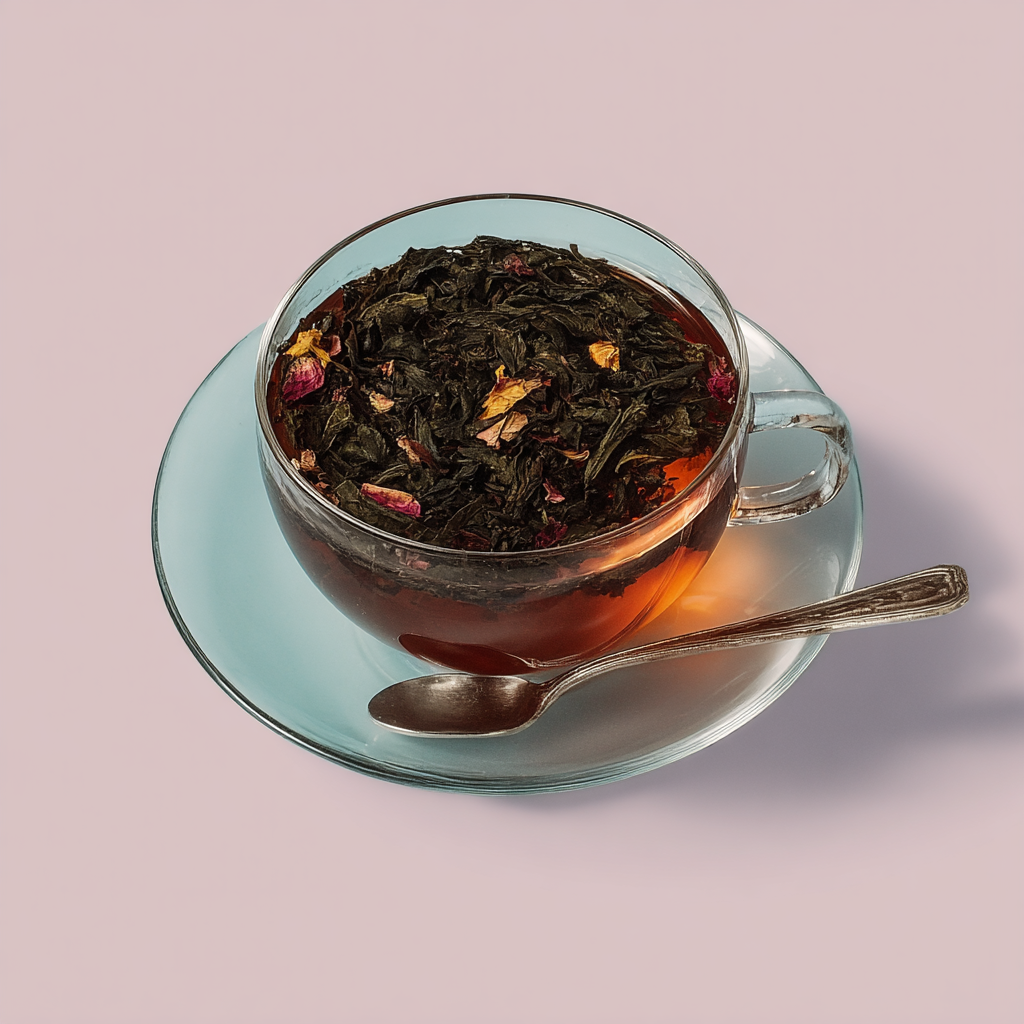 Ingrediënten: groene en zwarte thee, rozenblad, zonnebloembloesem, aroma.